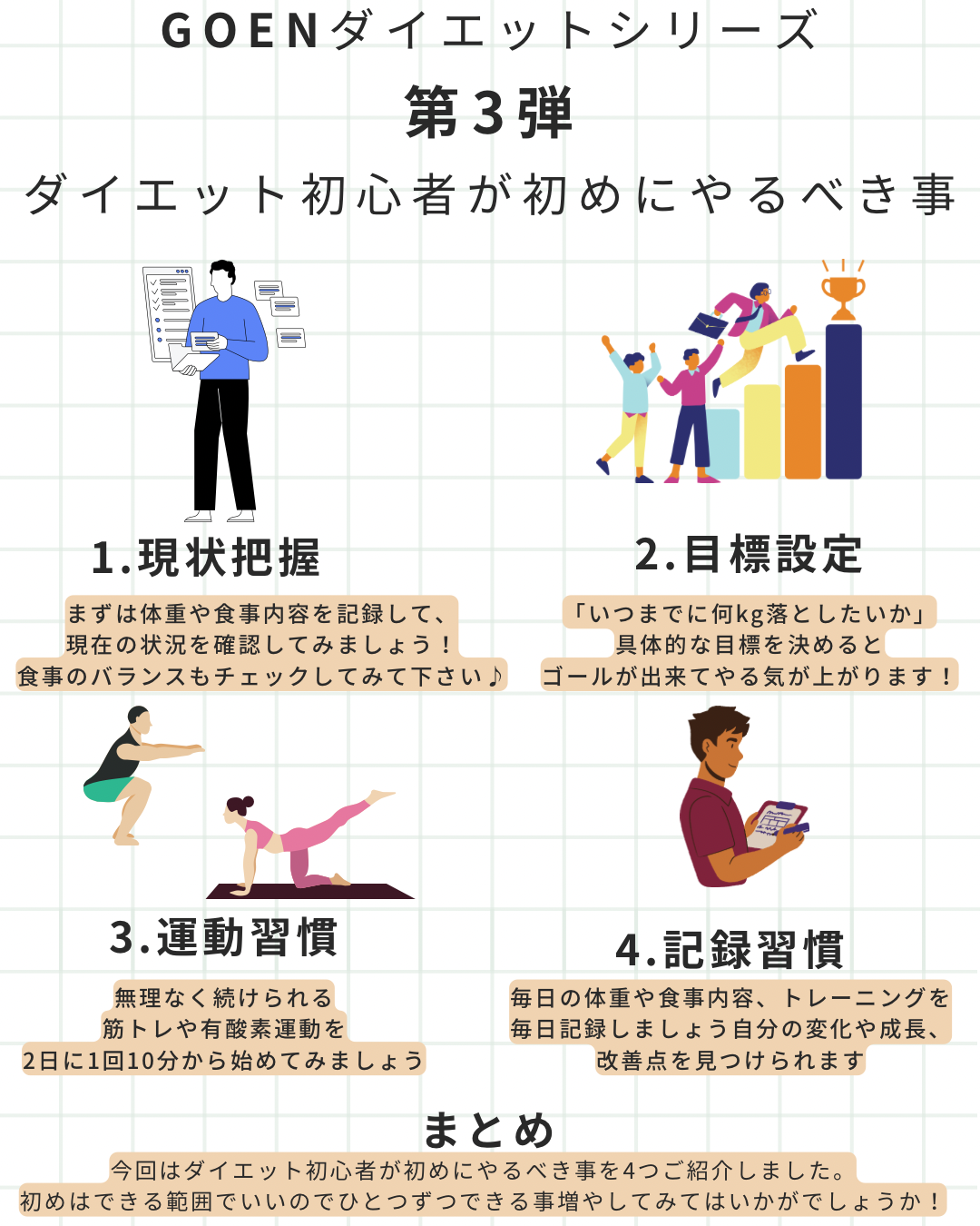 • 【GOENダイエットシリーズ 第3弾】ダイエット初心者の方へ:成功への第一歩